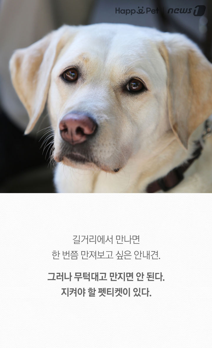 특히 시각장애인 안내견을 만났을 때 펫티켓은 무엇보다 중요하다.