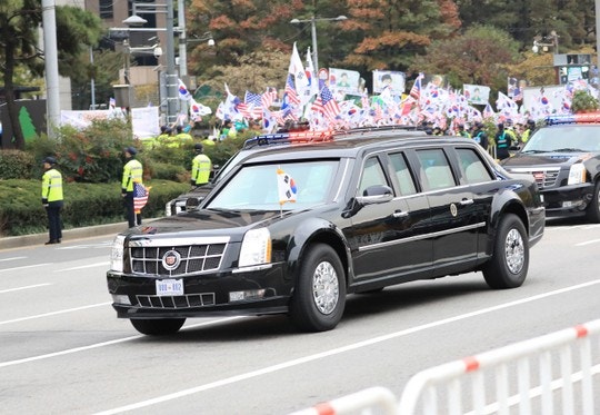 특히 트럼프 대통령이 방한기간 중 탈 비스트 ‘캐딜락 원( Cadillac One )’은 미국 비밀경호국( SS )이 지난 5일 오산 공군기지를 통해 미리 들여왔다.