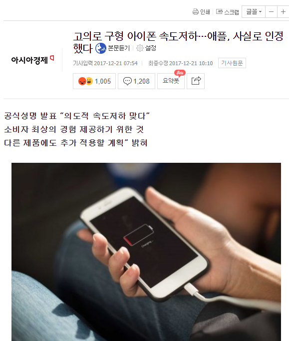 애플은 이같은 문제를 해결하기 위해 의도적인 속도저하를 선택했다고 설명했다.